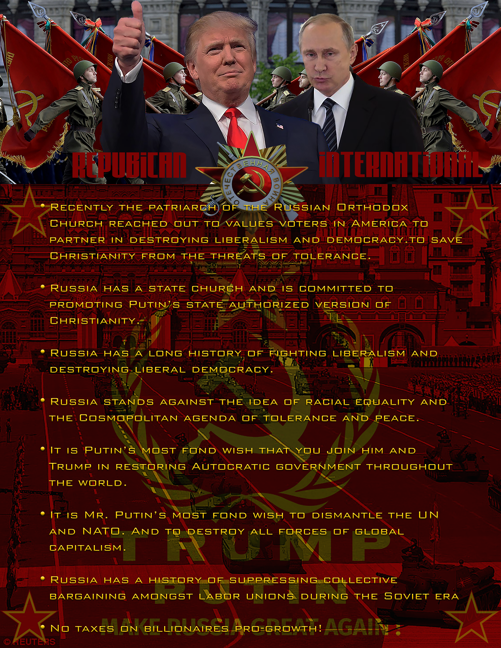 Comrade Donald J. Trump: Make America Great Again for Vladimir Putin. Is Donald Trump a Manchurian President for the Russian Federation or a xenophobic, sociopath, narcissist con man and a wannabe Emperor with no balls?